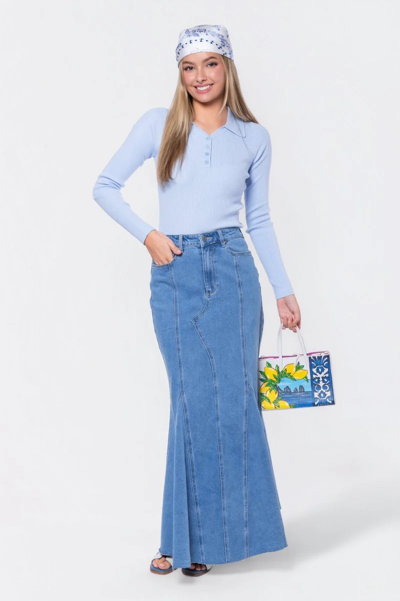 Introducing theĀ Bailey! Now available in this light blue color perfect for the season. Weāve added a bit of flair to your basic knit and made it a tasteful feminine top. Perfect for anyone in their soft girl era. Personalize your look with accessories and your favorite Yakira Bella skirt.