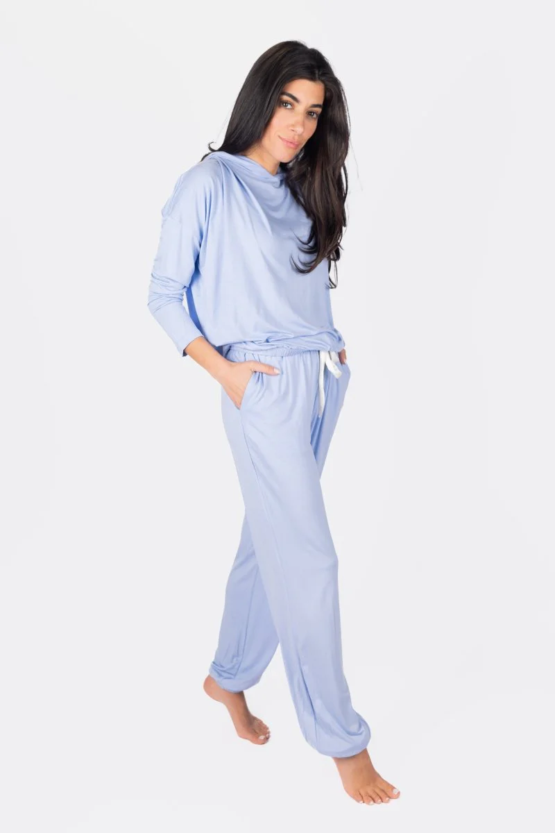 Effortlessly chic and ultra-comfy, this light blue pajama set is your new go-to for lounging in style. Featuring a relaxed-fit long-sleeve top and soft, flowy pants with a drawstring waist, itās designed for ultimate comfort while keeping you looking effortlessly put together. Perfect for cozy nights in, lazy mornings, or simply unwinding in elegance. Comfort meets sophistication in this must-have loungewear essential!