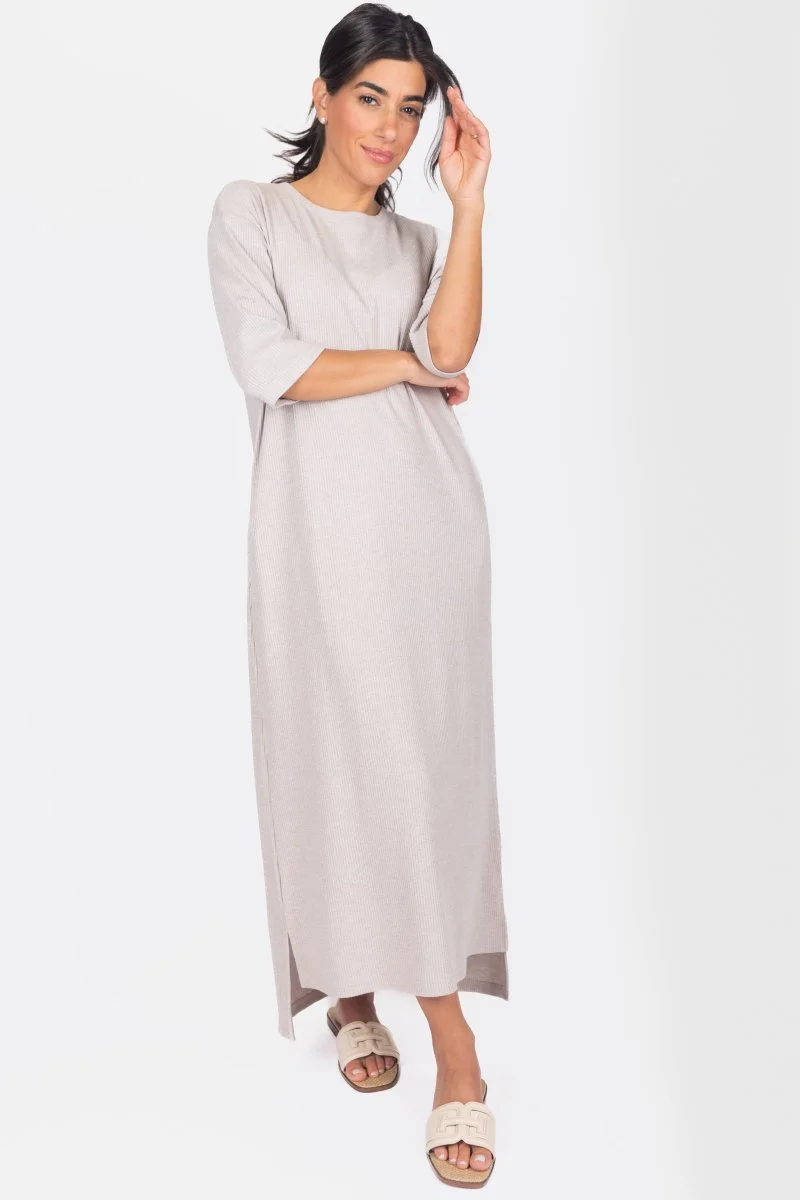 Need anĀ everyday comfortable basic? TheĀ ReeseĀ is a versatile maxi T-shirt dress for daily errand runs, lounging at home, or your next vacation. The ribbed knit material is the perfect weight for a multi seasonal piece. This dress although loose and comfortable, was designed to drape flatteringly over your natural shape. Dress it up or down with your favorite accessories. Available in two lengths 37" and 51" for your modest preference.