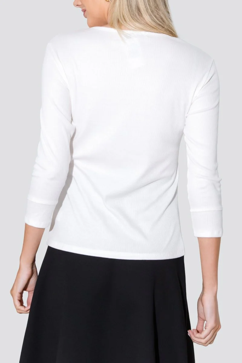 Upgrade your basics with theĀ Romi! This 3/4 sleeve ribbed tee is crafted with a flattering stretch. The effect of this top will make you feel comfortable while put together. This slimming, timeless, top-quality classic will pair with anything in your closet.Ā